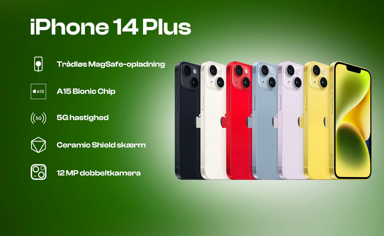 iPhone 14 Plus giver dig den samme teknologi som iPhone 14, men i en større udgave. Med sin 6,7" Super Retina XDR-skærm er den perfekt til dig, der vil have ekstra meget plads til videoer, gaming og multitasking. Som refurbished model får du den store oplevelse til en mindre pris.