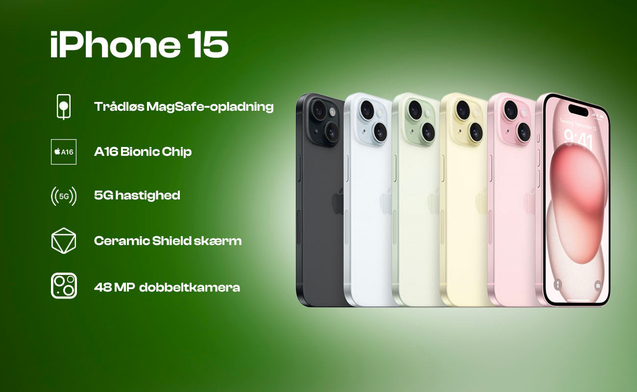 iPhone 15 bringer et frisk design og forbedret teknologi, og i refurbished udgave får du samme oplevelse til en langt lavere pris.